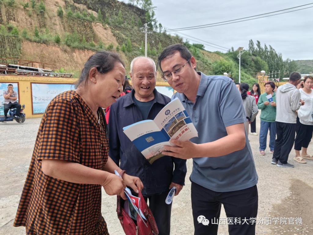 师生们主动为当地有就学意愿的中学生家长发放了我校的招生简章,鼓励在校中学生好好学习,希望他们未来也能参与到医学事业之中,为祖国的卫生健康事业发展增添新的活力。