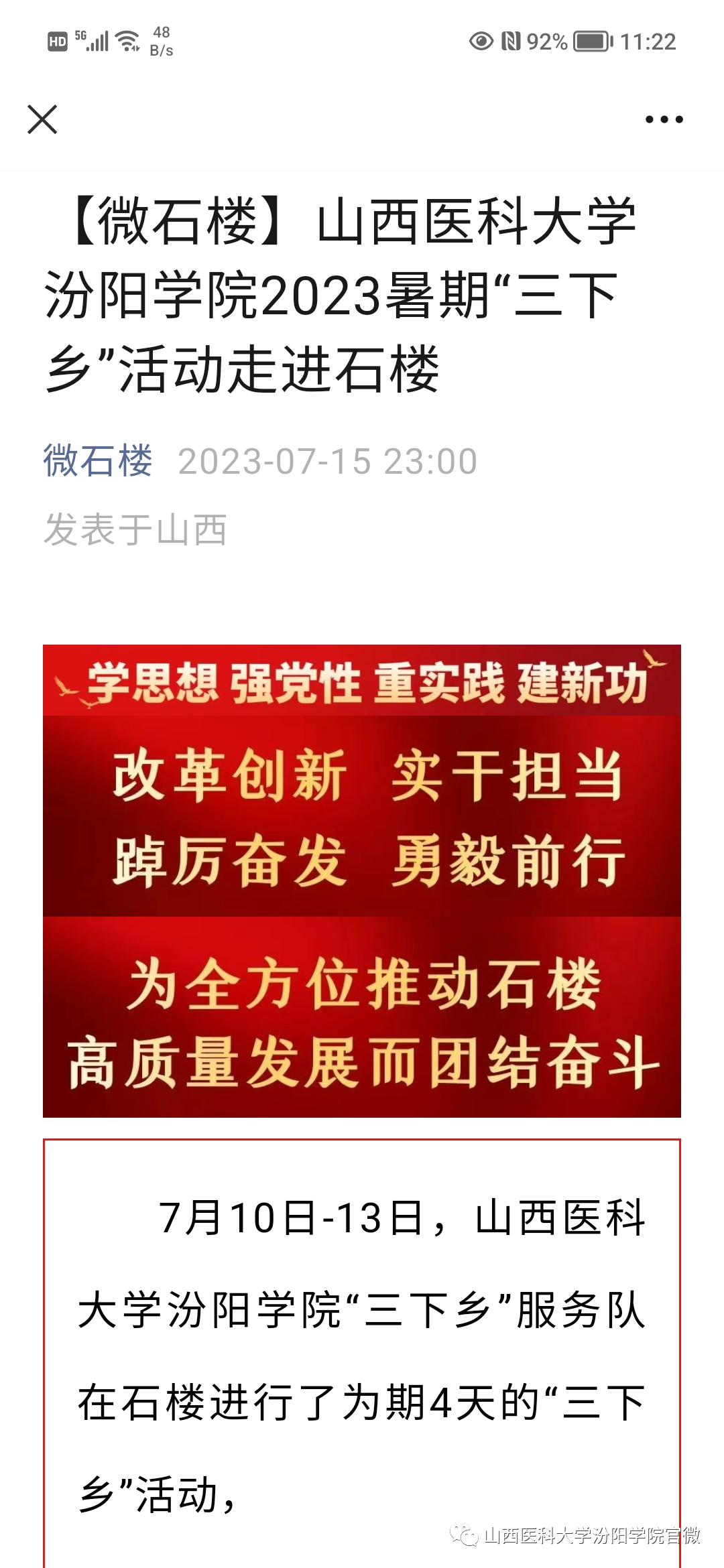 石楼县融媒体中心的微信公众号“微石楼”对我校师生的暑期“三下乡”实践活动进行了报道。