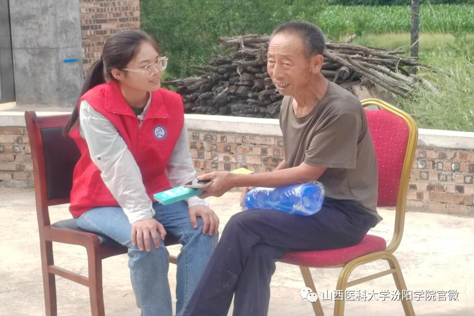期间,同学们还为村民测血糖、量血压,将理论知识与社会实践联系起来,为村民答疑解惑提供健康指导。通过测量,发现部分村民存在高血压的情况,这是引起心脑血管病的高危因素。为此,同学们为村民进行“合理膳食,少油少盐,适量运动”的健康宣讲,并向村民介绍了常见慢性病的知识,以便村民及时采取预防措施。