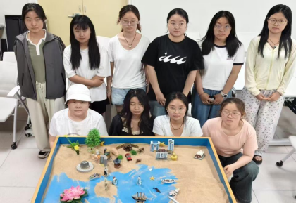 活动结束,同学们轻抚沙盘将其恢复平整,象征“将故事留在当下,带走属于自己的领悟”,与沙盘作品创意合影,记录这场无声却深刻的旅程。