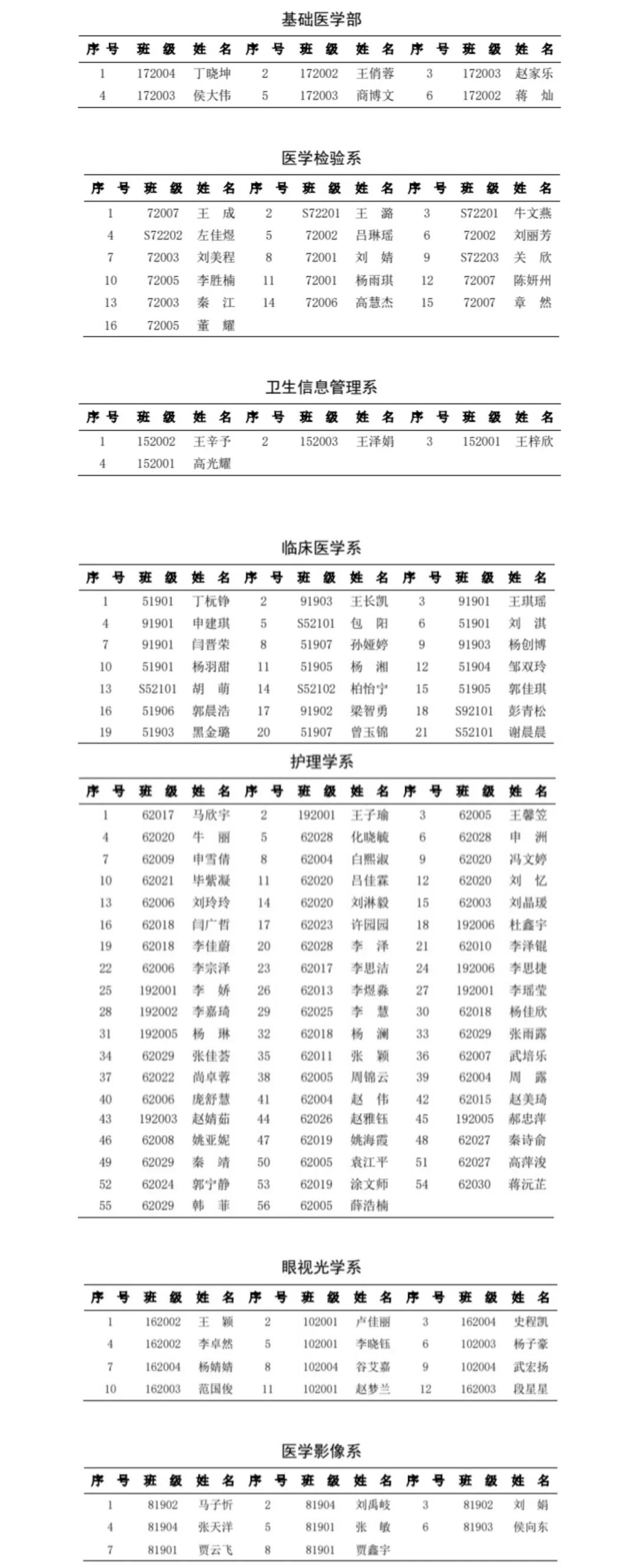 为全面落实“立德树人”根本任务,树立先进典型,凝聚榜样力量,充分发挥优秀毕业生的示范作用,激励与引导同学们德、智、体、美、劳全面发展,根据我校《山西医科大学汾阳学院先进班集体、优秀个人评选实施办法》(山医大汾院院字〔2017〕151号)、《关于2024届优秀本科毕业生、优秀实习生评选的通知》(山医大汾院函〔2024〕136号) 等文件精神,经学校相关工作委员会及领导小组审议、公示并经校党委、行政决定,评选丁晓坤等123名同学为“优秀本科毕业生”。