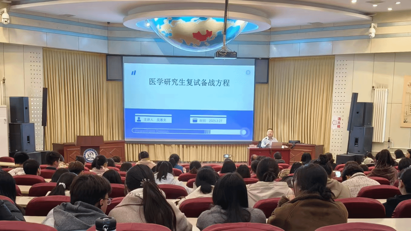 为精准服务我校考研学生需求,帮助学生掌握复试及调剂关键环节和技巧,3月27日下午,学生工作部与科技中心在敦学楼学术报告厅举办“医学生考研复试备战方程”专题指导讲座。讲座采取“线下讲座+线上直播”方式,由我校科技中心主任、硕士生导师吴惠文老师主讲。学生工作部、教务处主要负责人,系(部)分管学生工作的党总支副书记、高年级辅导员、学业导师出席。线上线下共吸引了420余名学生参加。