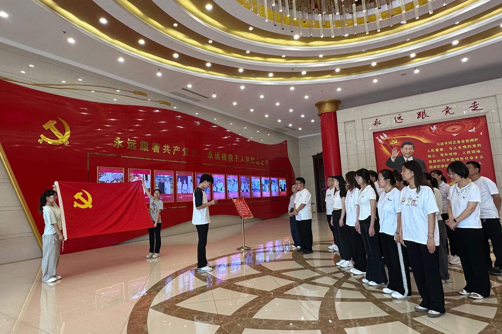 参观结束后,在庄重的氛围中,老党员代表为新党员佩戴上了熠熠生辉的党员徽章,新老党员面对面完成了一场初心的传承,一场责任与使命的传递。全体党员面向鲜红的党旗,举起右拳,在党总支副书记张华同志的带领下庄严宣誓,当铮铮誓言响起,数十年的坚守与青春的承诺在此刻交相辉映,赓续着共产党人代代相传的精神血脉。