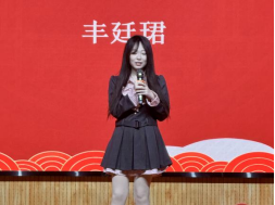 王昭鑫、侯超颖两位同学带来的相声《学抖音》,贴近生活,将网络热点与校园趣事结合,包袱不断,笑声连连。