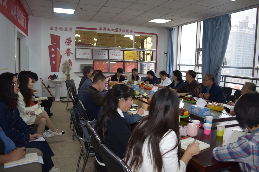9月13日上午,校教学督导委员会主任刘荣臻,成员崔芙蓉、李湘梅、王玉香、兰冰洁、任吉莲,教务处副处长王艳锋莅临医学检验系召开教学督导工作动员暨座谈会,医学检验系主任张晓延、副主任程凯及综合办公室主任、教学秘书、教研室实验室主任参加。座谈会上,王艳锋副处长代表教务处对教学督导工作进行了安排部署,刘荣臻主任对医学检验系教学督导工作任务要求进行了说明强调。医学检验系主任张晓延对校教学督导委员会深入医学检验系进行教学监督检查和指导表示热烈的欢迎和诚挚的感谢,并就医学检验系发展历程、获得成绩和荣誉、存在的问题和不足、本学期工作重点及下一步发展计划等作了汇报。