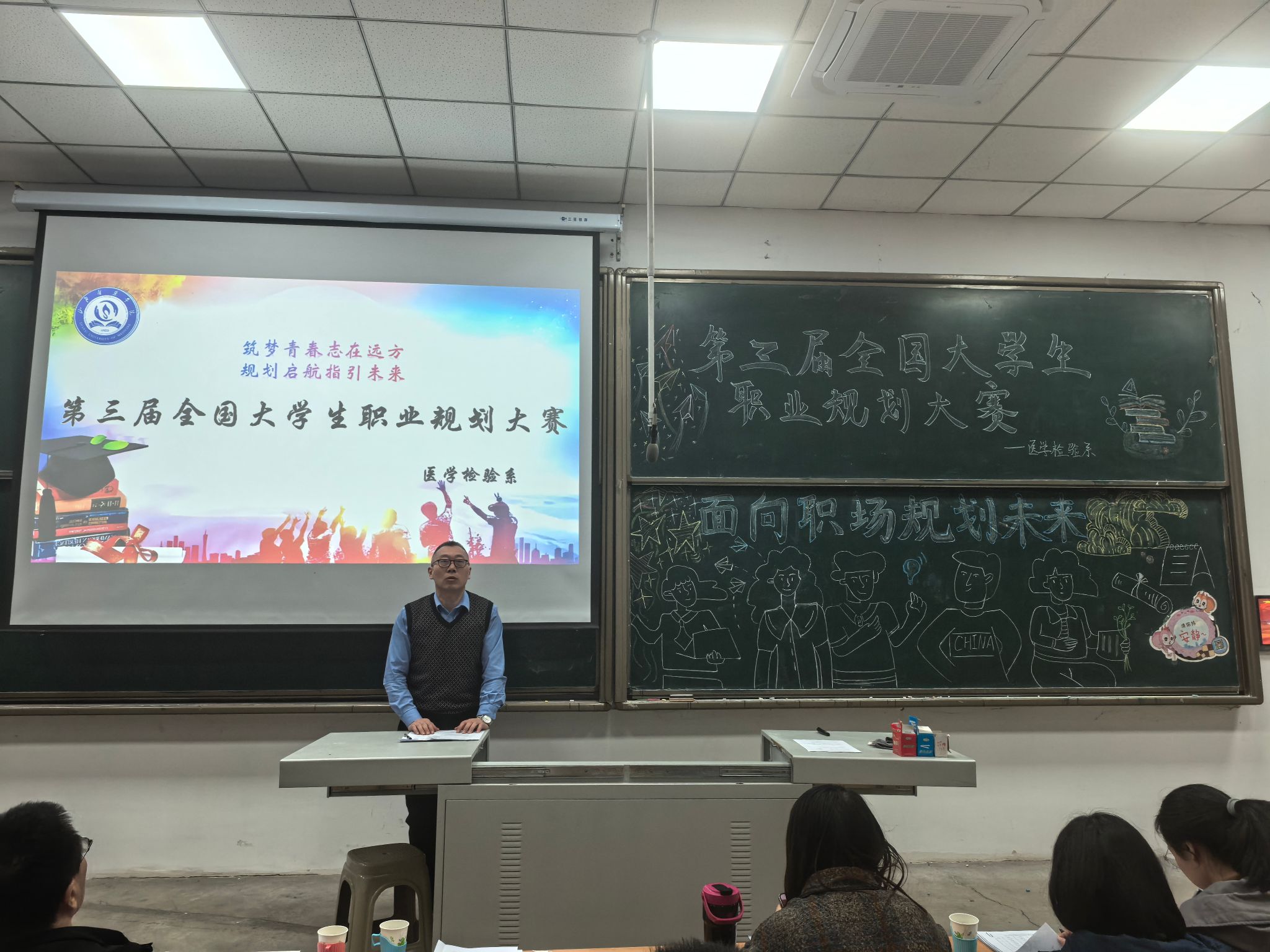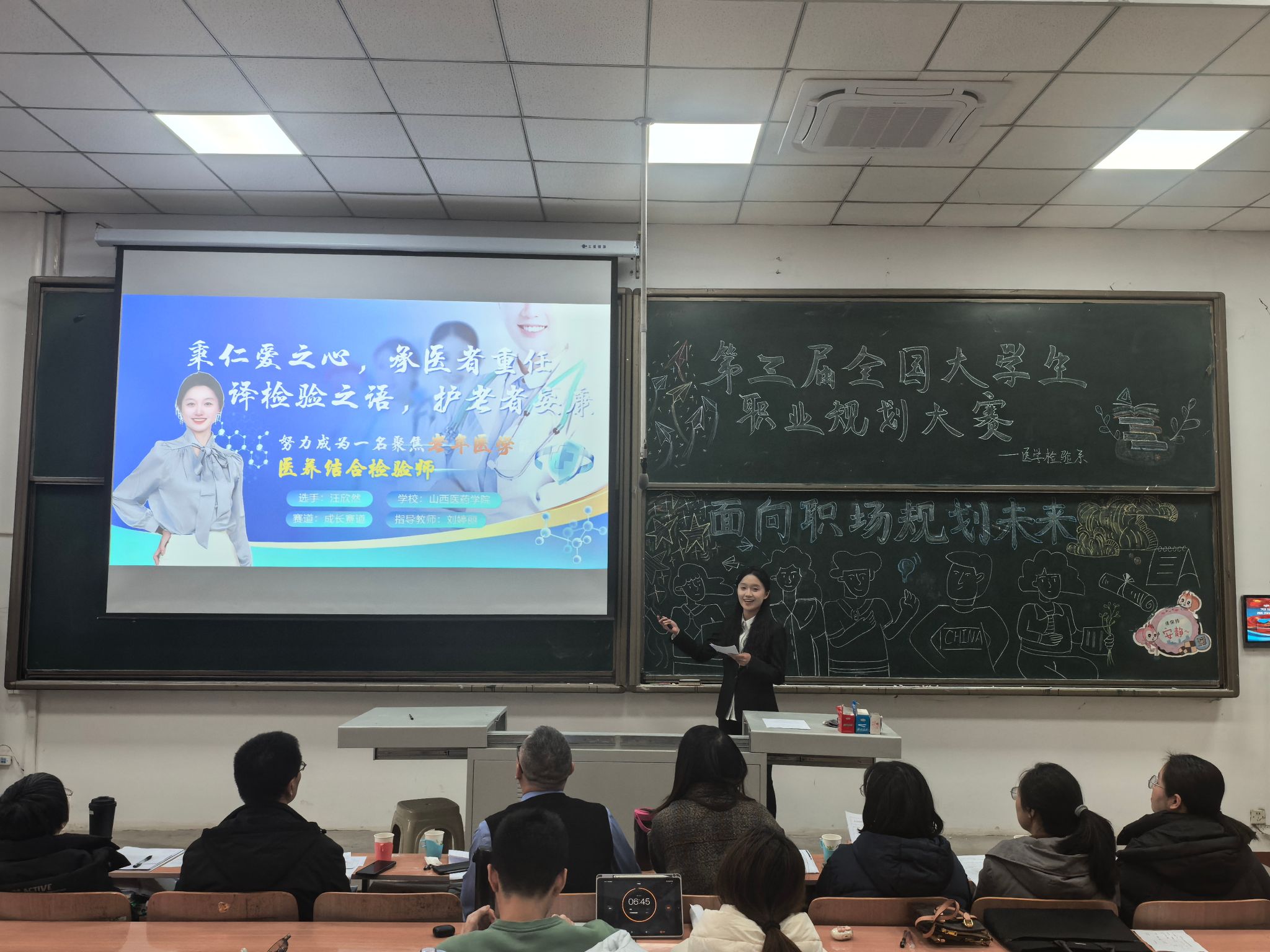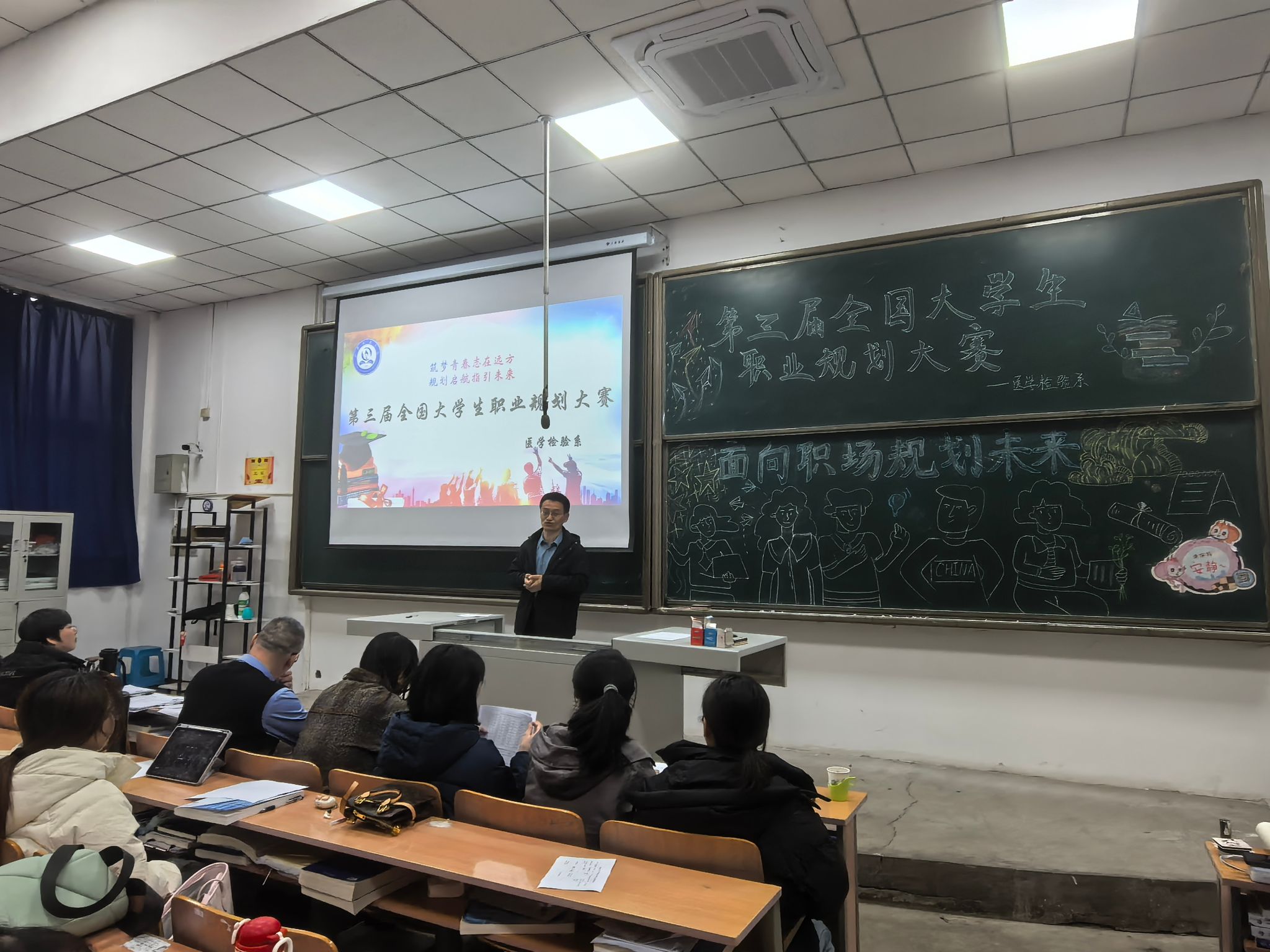 筑梦青春志在四方,规划启航职引未来。为加强高校生涯教育和就业指导,增强大学生生涯规划意识,促进高校毕业生高质量充分就业。医学检验系于2025年12月10日,在聚成楼二教举办了第三届职业生涯规划大赛,本次比赛出席的评委有医学检验系党总支副书记雷亚旭、副主任程凯以及各班辅导员。
