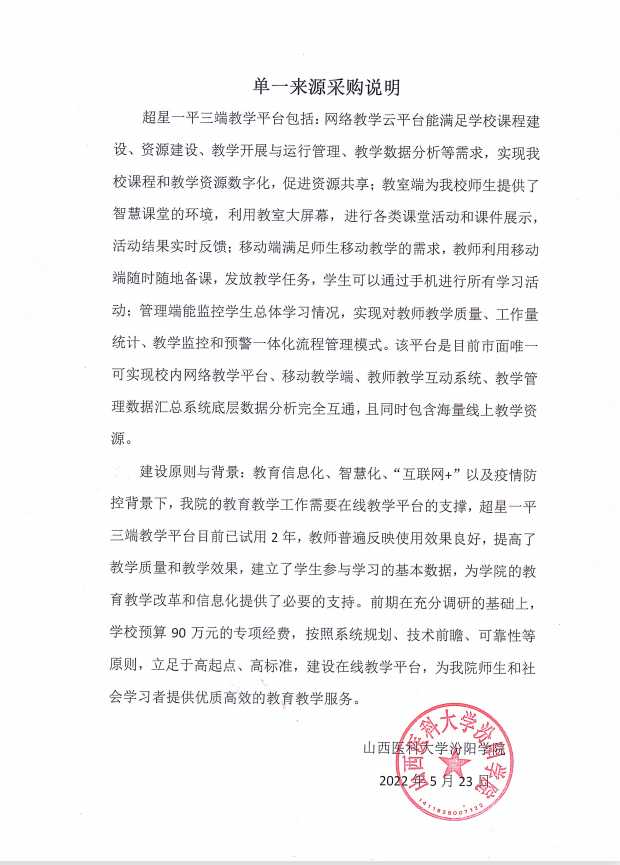超星一平三端教学平台单一来源采购公示